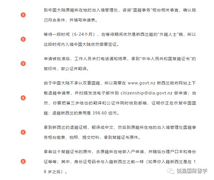 由于中国大陆不承认双重国籍,所以在入籍新西兰后就等于放弃中国国籍